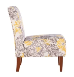 Shleby Gray & Yellow Floral Armless Accent Chair