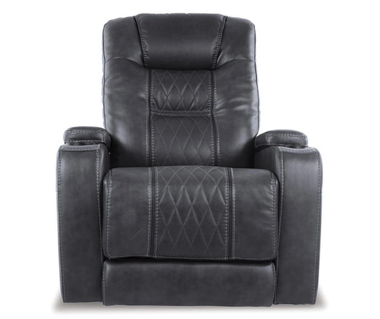 Movie nights will be forever changed with this power recliner. The adjustable Easy View headrest allows a primo view of the TV no matter how far back you recline and the extended ottoman provides extra room to really stretch out. Ultra-cool lattice stitching elevates the look and ambient LED lighting completes the theater-style experience. So relax, kick off your shoes and enjoy the show.