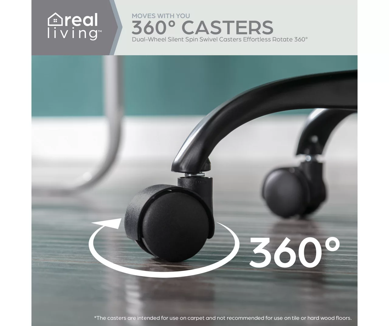 - 360° swivel seat and 5 rolling caster wheels